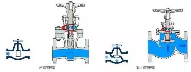 截止閥在做開啟關閉時,是上升閥桿式的,也就是說轉動手輪,手輪會跟著閥桿一起做旋轉和升降運動。閘閥是轉動手輪,使閥桿做升降運動,手輪本身位置不變。